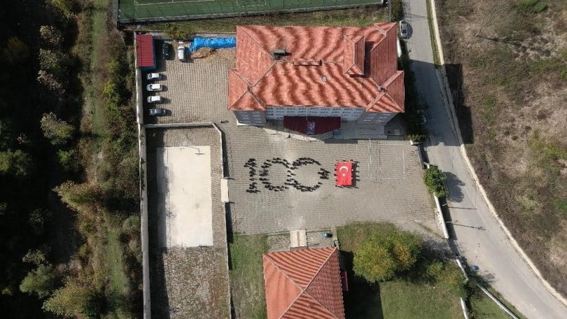 Yenice ilçesine bağlı Yortan Beldesindeki Çok Programlı Anadolu Lisesi öğrencileri ve öğretmenleri “100. Yıl” yazılı koreografı oluşturdu.