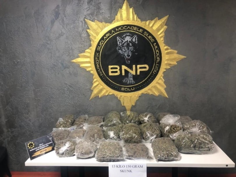 2 araçta bulunan M.A., İ.Y., F.P. ve M.F.B. isimli şahıslar araçtan indirildi. Yapılan operasyon çerçevesinde 2 araç didik didik arandı. Aramalar neticesinde 4 şahsın üzerinden ve araçlardan 13 kilo 150 gram skunk maddesi çıktı. Olayla ilgili 4 şüpheli gözaltına alındı. Emniyetteki işlemleri tamamlanan 4 şahıs adliyeye sevk edildi. M.A., İ.Y. ve F.P. isimli şahıslar çıkarıldıkları mahkemece tutuklanırken, M.F.B. isimli şahıs ise adli kontrol şartıyla serbest bırakıldı.