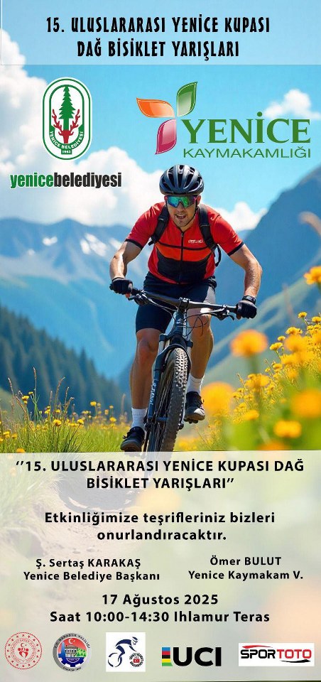 İlçede 17 Ağustos 2025 Pazar günü düzenlenecek 15. Uluslararası Yenice Kupası Dağ Bisiklet Yarışları, Ihlamur Teras Tesisleri’nde 10.00-14.30 saatleri arasında gerçekleştirilecek. Uluslararası birçok sporcunun katılacağı yarış, doğa ile spor tutkunlarını bir araya getirirken heyecan dolu anlara sahne olacak.