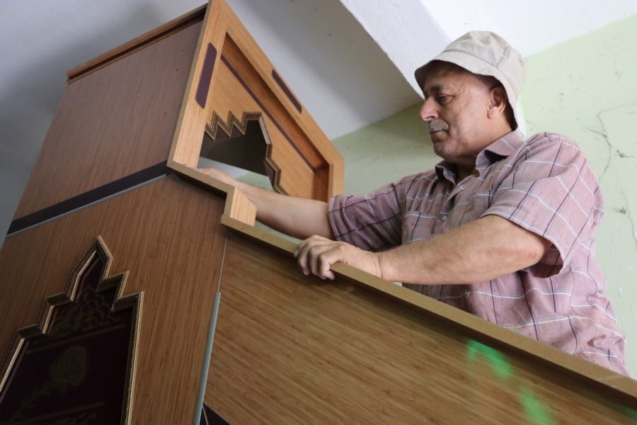 Doğduğu Osmanlı köyündeki caminin mobilya ihtiyaçlarını gönüllü olarak yapan Gülçiçek, 15 yıl önce emekli olduktan sonra kendisini camilerin hizmetine adadı.