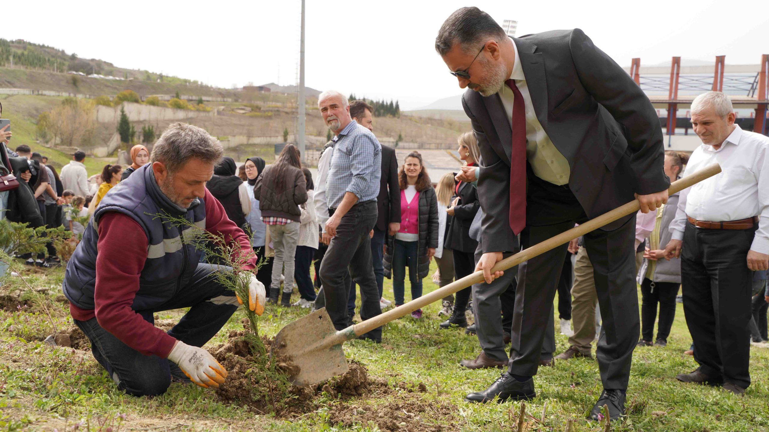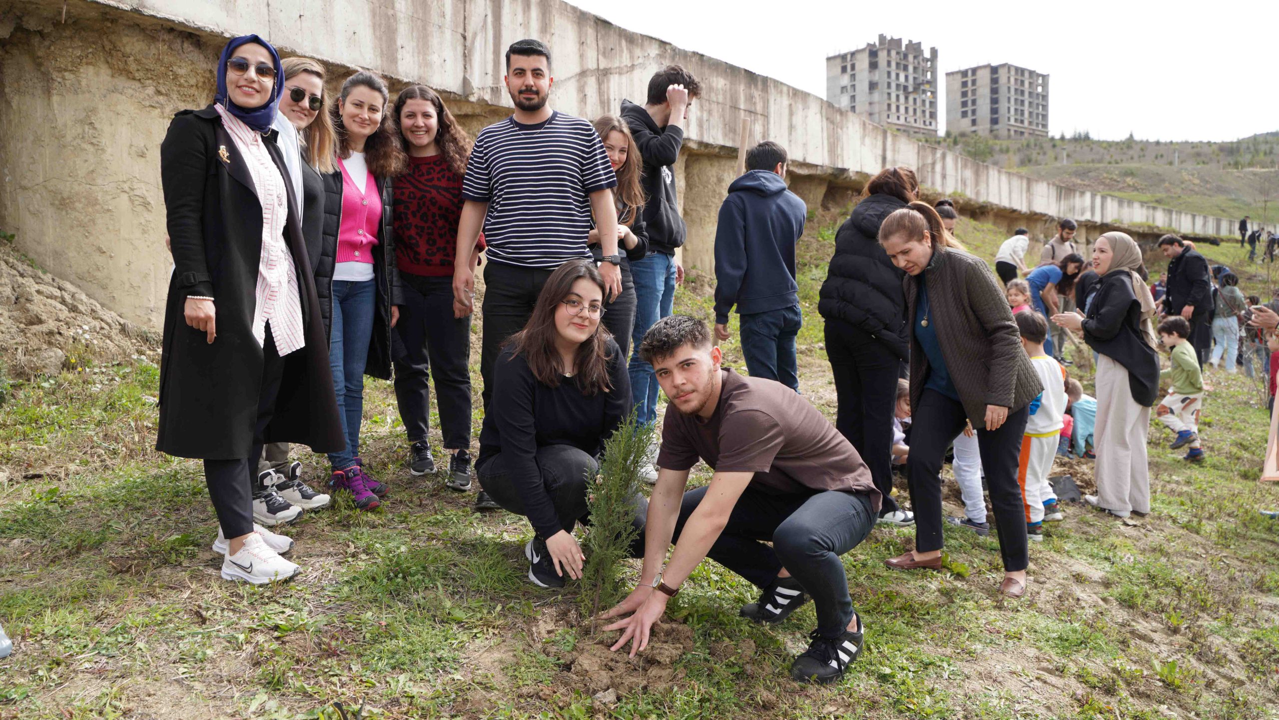 Düzenlenen fidan dikme etkinliği ile kampüs içindeki yeşil alanların artırılması amacıyla gelecek nesillere daha yaşanabilir bir dünya bırakabilmek için fidanlar toprakla buluşturuldu.