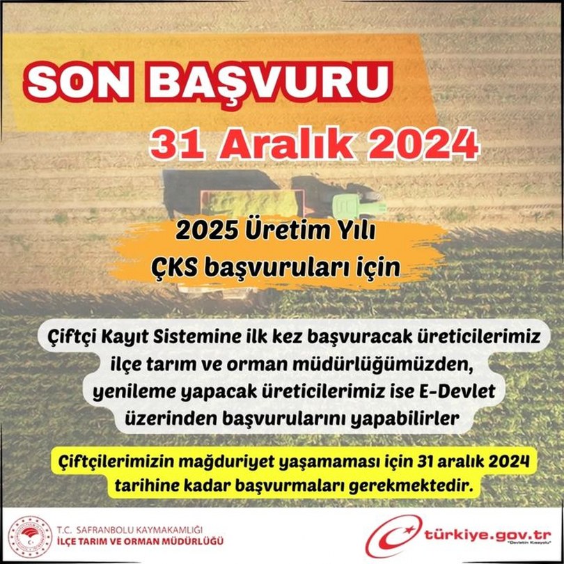 Başvurular, e-Devlet üzerinden ya da İl/İlçe Müdürlükleri aracılığıyla yapılabilecektir. Çiftçilerin tarımsal desteklerden faydalanabilmesi ve üretimlerinin sağlıklı bir şekilde takip edilebilmesi adına ÇKS başvurularının önemi vurgulandı. Ayrıca, başvuruların zamanında yapılmasının, çiftçilerin haklarını kaybetmemesi için büyük önem taşıdığı ifade edildi.
