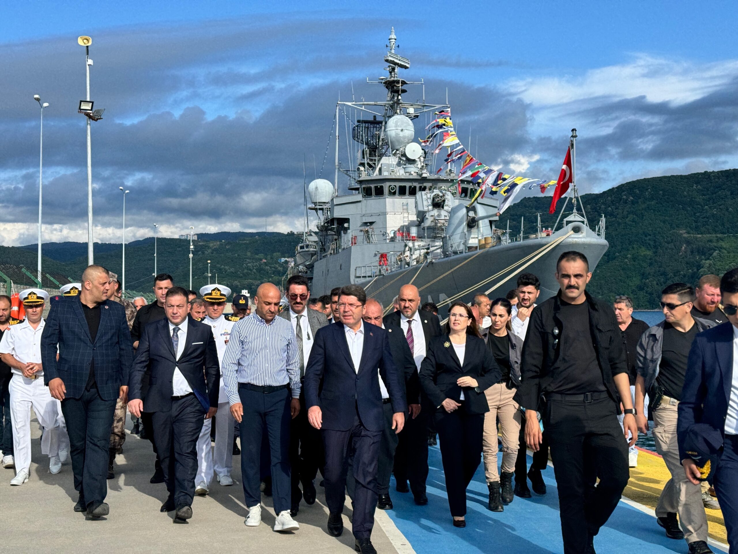 Bartın’ın Amasra ilçesindeki Büyük Liman iskelesine demirleyerek ziyarete açılan Türk Deniz Kuvvetleri Komutanlığına ait TCG Yıldırım Fırkateyni’ni gezen Bakan Tunç, gemi hakkında bilgi aldı, personelle sohbet etti.