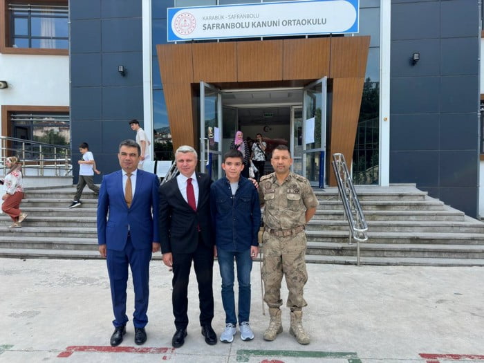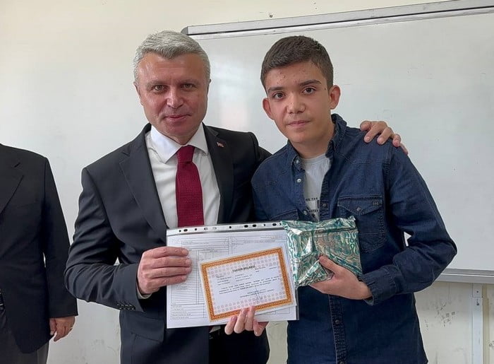 Ebru ile Murat Alphan çiftinin 14 yaşındaki oğlu Yusuf Kağan, Kanuni Ortaokulu’nu okul birincisi olarak bitirmenin gururunu yaşadı. Alphan, takdir belgesi ile karnesini Kaymakam Şaban Arda Yazıcı’nın elinden aldı.