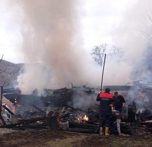 Ahşap ev, yangın sonucu kullanılamaz hale geldi.