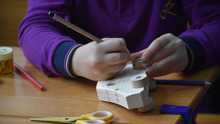 Öğrencilerden Şimal Reis, sınıf arkadaşının dedesine teşekkür ederek, “Bize çok güzel oyuncaklar yaptı, onları boyayıp oynayacağız.” dedi.