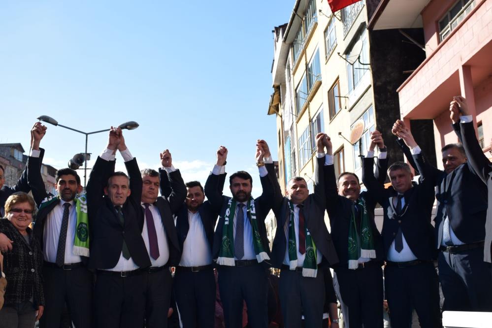 Trafiğe kapatılan caddede yüzlerce vatandaşın katıldığı seçim ofisi açılışı ve aday tanıtım töreni miting havasında geçerken, caddeyi dolduran kalabalık ise sloganlarla ilçeyi inletti.