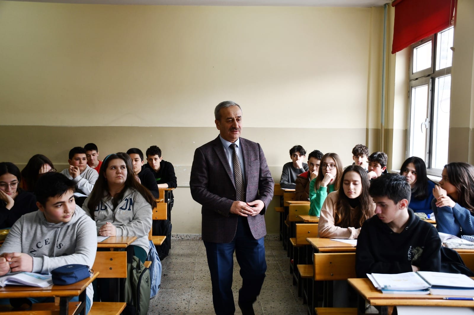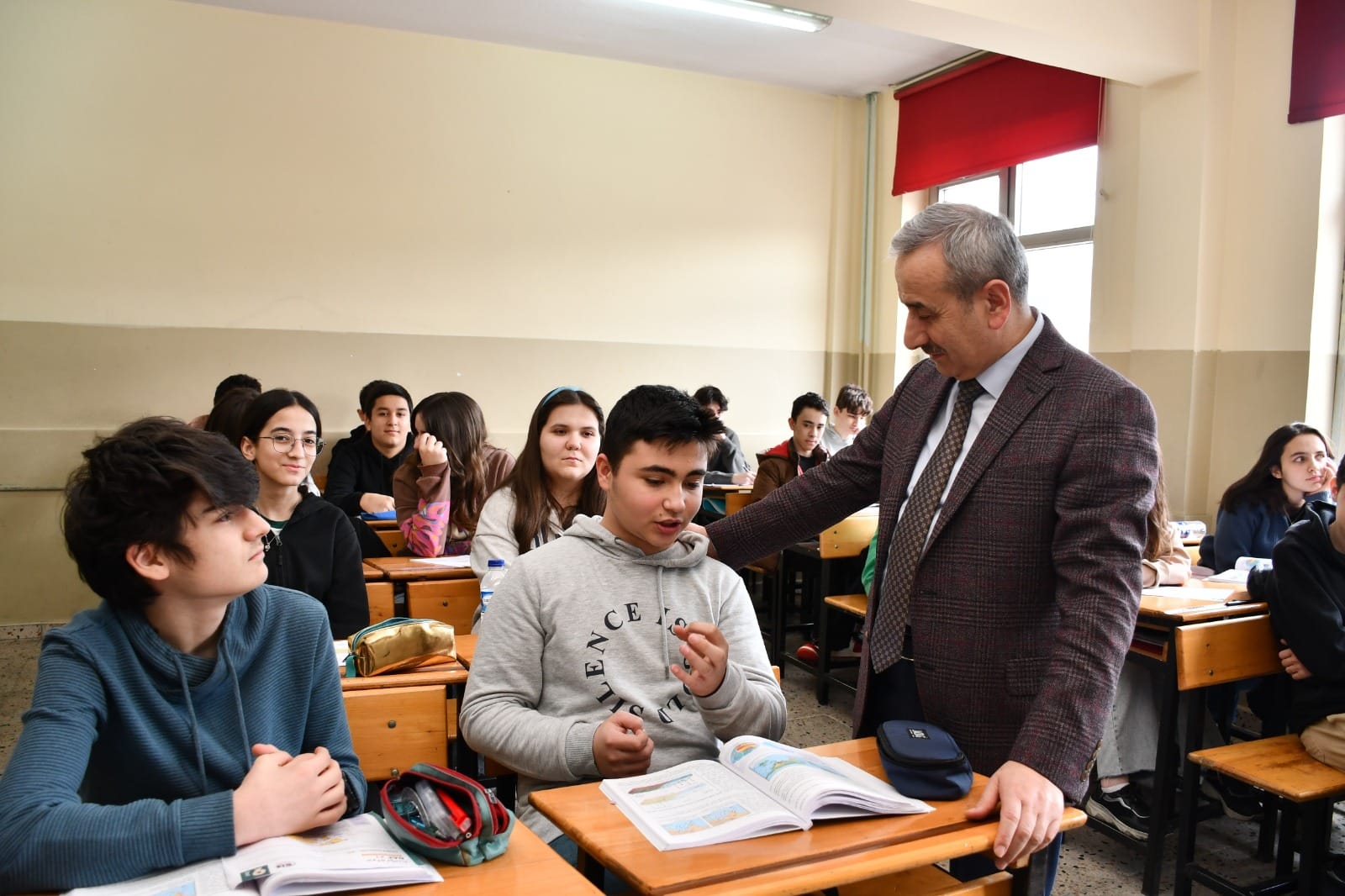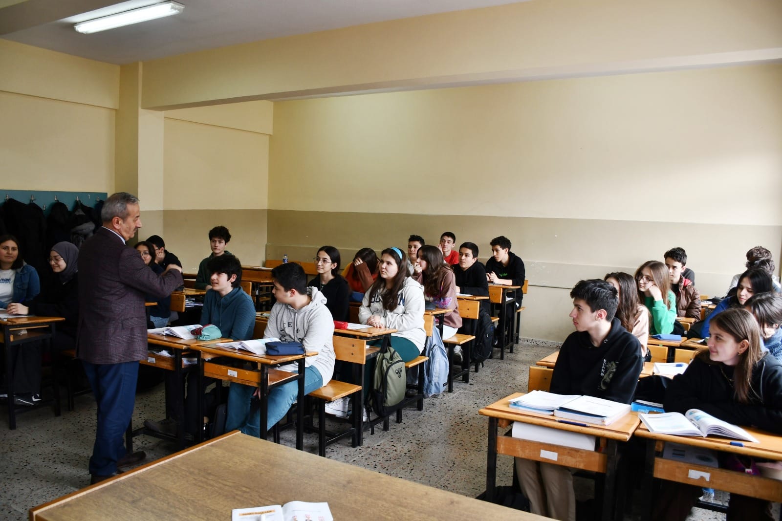 Sınıf ziyareti de gerçekleştiren Akbaş, öğrenciler ile gelecek hedefleriyle ilgili sohbet ederek kitap okumayı ihmal etmemelerini, değerlerimizi ve kültürümüzü tanımalarını, kendilerini akademik alan ile birlikte sosyal ve sportif alanlarda da geliştirmeleri noktasında tavsiyelerde bulunarak başarılar diledi.
