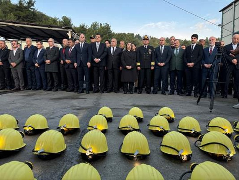 Bartın’ın Amasra ilçesindeki maden ocağında meydana gelen patlamada hayatını kaybeden işçiler için müessesedeki servis kuyusunun önünde anma töreni düzenlendi.