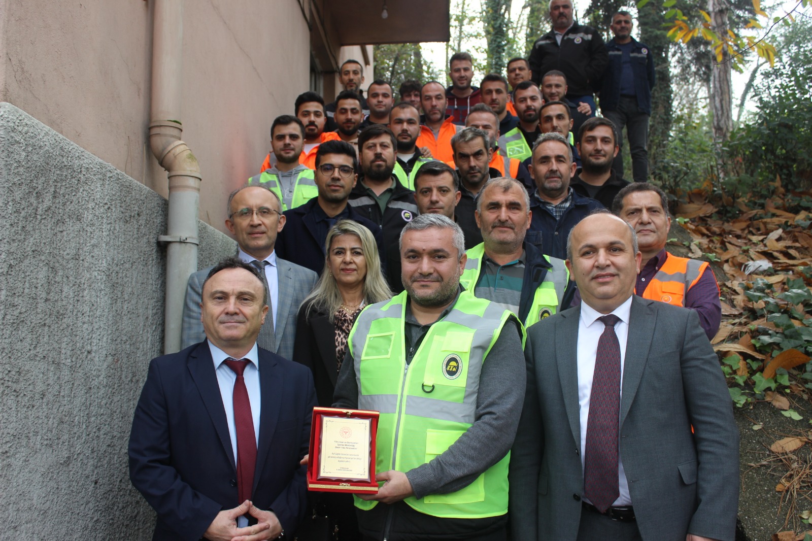 TTK Demiryolu Başmühendisliği Şantiyesi’nde düzenlenen törende İl Sağlık Müdürü Ertuğrul Güner, makinist Öyüm’e duyarlı davranışından dolayı plaket takdim etti.
