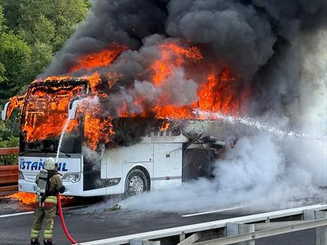 Durumu fark eden sürücü, otobüsü sağ şeride çekerek yolcuları tahliye etti.