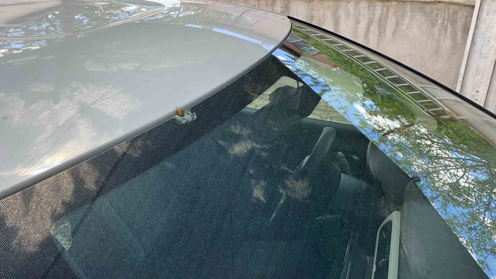 Tokat’ın Erbaa ilçesinde yaşayan 37 yaşındaki Emre Kanbulat, aracını Yunus Emre Mahallesi Derman Sokaktaki evinin bahçesine park etti. Bir süre sonra aracına gelen Kanbulat hayatının şokunu yaşadı. Aracın ön camına yorgun mermi isabet ettiğini gören sürücü, duruma isyan etti.