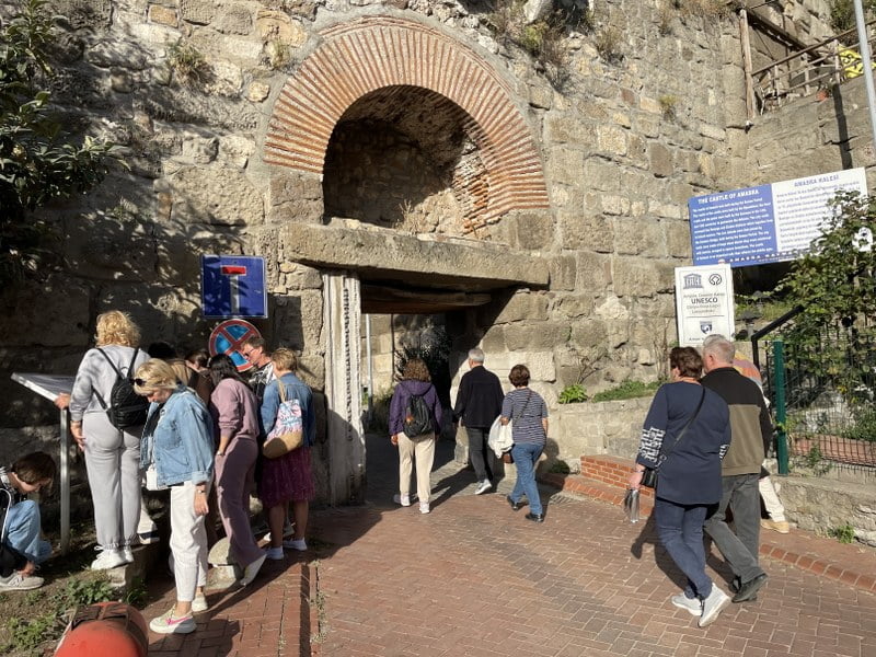 Rehberler eşliğinde Amasra Müzesi, Çekiciler Çarşısı, Büyük Liman, Amasra Kalesi ve Kemere Köprüsü’nde vakit geçiren turistler, fotoğraf çekerek doğal güzellikleri kayıt altına alıyor.