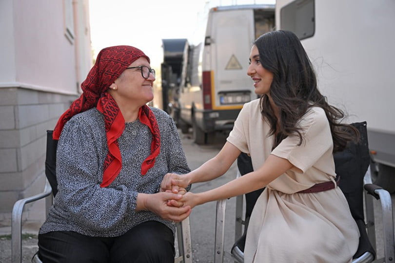 Aybüke Yalçın’ın annesi Zehra Yalçın ile babası Sadık Yalçın film setini ziyaret ettiler.