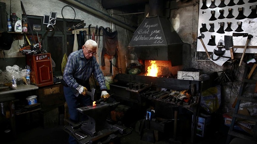 Bal, geçmişte traktör çapası ve römork da yaptığını belirterek, ilçenin göç vermesiyle tarım azaldığı için sadece balta ve sac soba yaptığını anlattı.