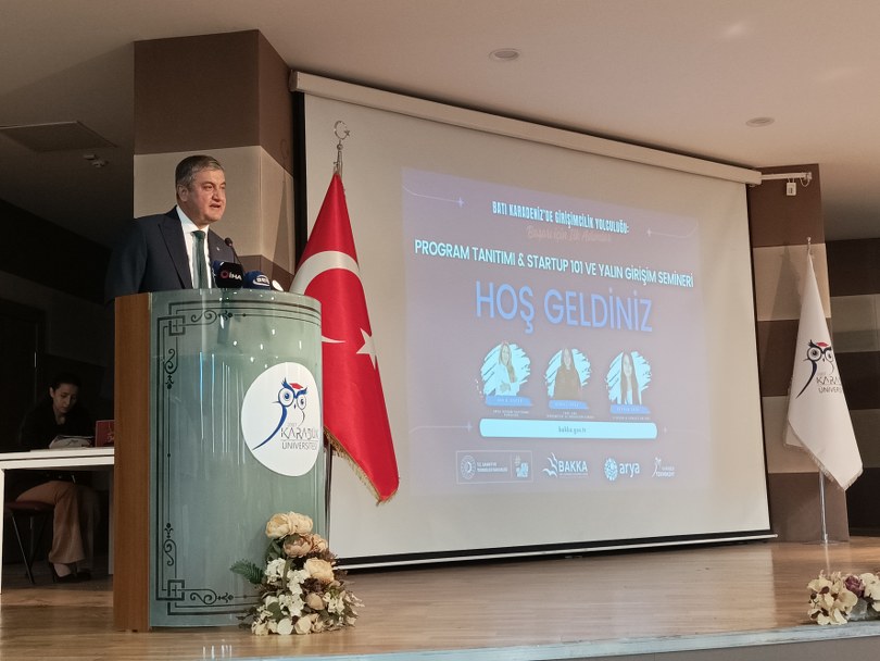 Batı Karadeniz Kalkınma Ajansı (BAKKA) ve Arya Yatırım Platformu iş birliğiyle hayata geçirilen “Batı Karadeniz Girişimcilik Yolculuğu: Başarı için İlk Adımlar” programı tanıtım toplantısı ve Startup 101 & Yalın Girişim semineri, Karabük Üniversitesi Mühendislik Fakültesi Hamit Çepni Konferans Salonu’nda gerçekleştirildi. Programa Karabük Valisi Mustafa Yavuz, Karabük Üniversitesi Rektörü Prof. Dr. Fatih Kırışık, BAKKA Genel Sekreter V. Mehmet Çetinkaya, Arya Yatırım Platformu Kurucusu Ahu Büyükkuşoğlu Serter, Arya Operasyon Müdürü Deniz Öztürk, E-dison Al Kurucu Ortağı Reyhan Eren, Karabük KOSGEB Müdürü Serhat Saygın, STK temsilcileri ve öğrenciler katıldı.