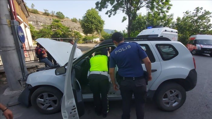 R.Ü. idaresindeki 78 BR 733 plakalı cip, Çavuş Mahallesi Mimar Sinan Caddesi’nde sürücünün direksiyon hakimiyetini kaybetmesiyle yol kenarındaki beton direğe çarptı.