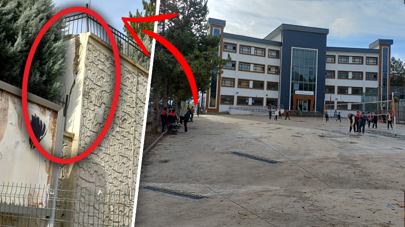 Öğrencilerin Bahçesinde oyun oynadığı Bahçenin İstinat duvarı Çatlamış ve Büyük bir tehlike içinde