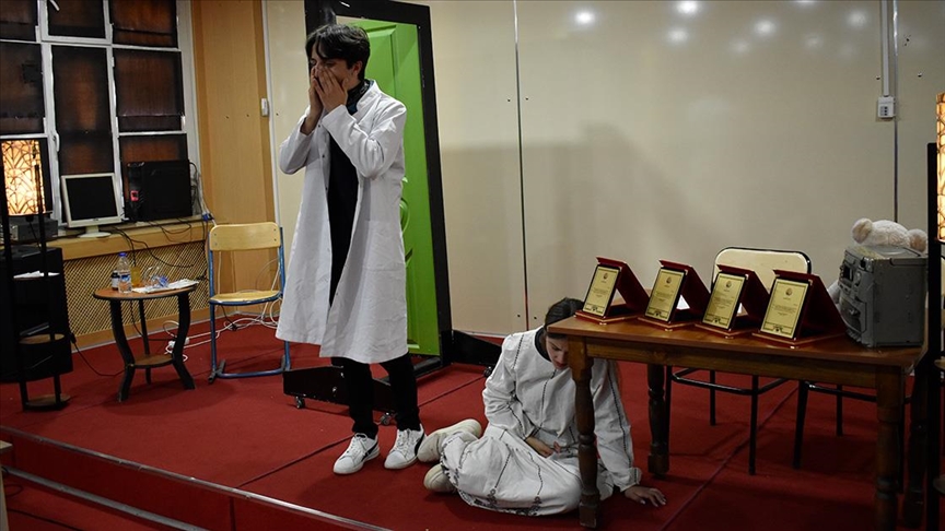 Okulun müzik öğretmeni Ömer Erzurum’un öncülüğünde 7 ay önce kurulan tiyatro kulübüne katılan öğrenciler, kendi yazdıkları “Ölüm Konçertosu” adlı oyunla yarışmaya katıldı.