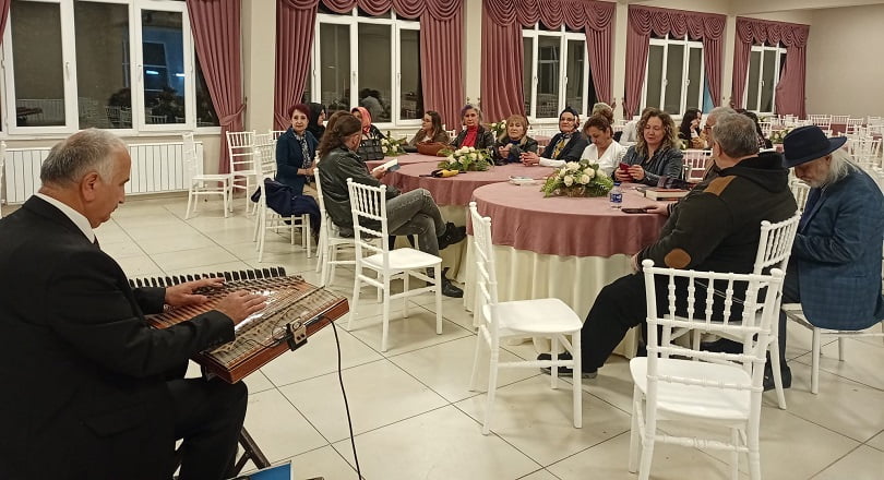 Akşam yemeği ile başlayan program, kanun dinletisi, türküler ve şiirlerle devam etti. Güzel bir akşam geçiren katılımcılar Yazar Şair Döndü Açıkgöz’e teşekkür etti.