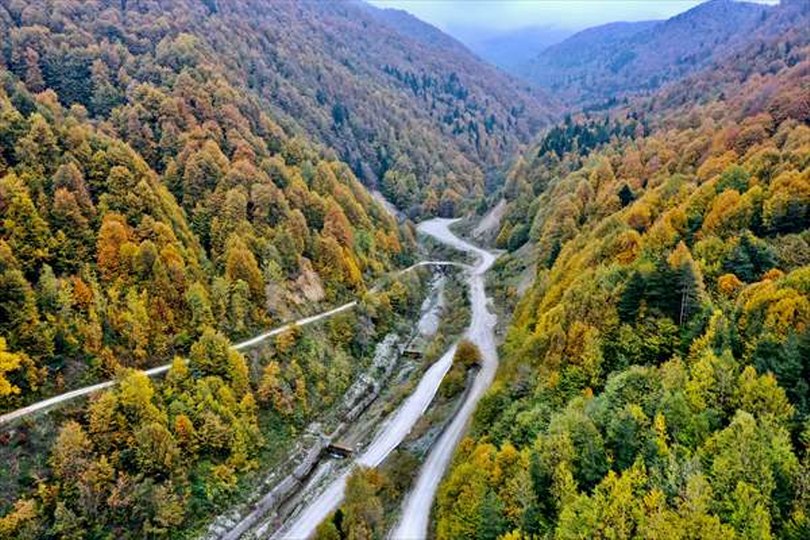 Bolu Dağı’nda sonbaharın renkleri, dronla görüntülendi.