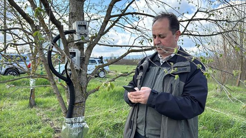 Bu kapsamda fidanlıktaki seçili fındık ağaçlarına, topraktan aldığı su miktarının ölçülmesi için cihazlar takıldı.