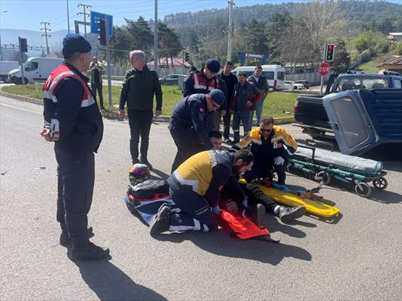 D-100 kara yolundan Bolu istikametine seyreden S.O’nun kullandığı 74 ABL 360 plakalı motosiklet, Çaydurt ışıklı kavşakta İ.G. yönetimindeki 14 EH 758 plakalı hafif ticari araçla çarpıştı.