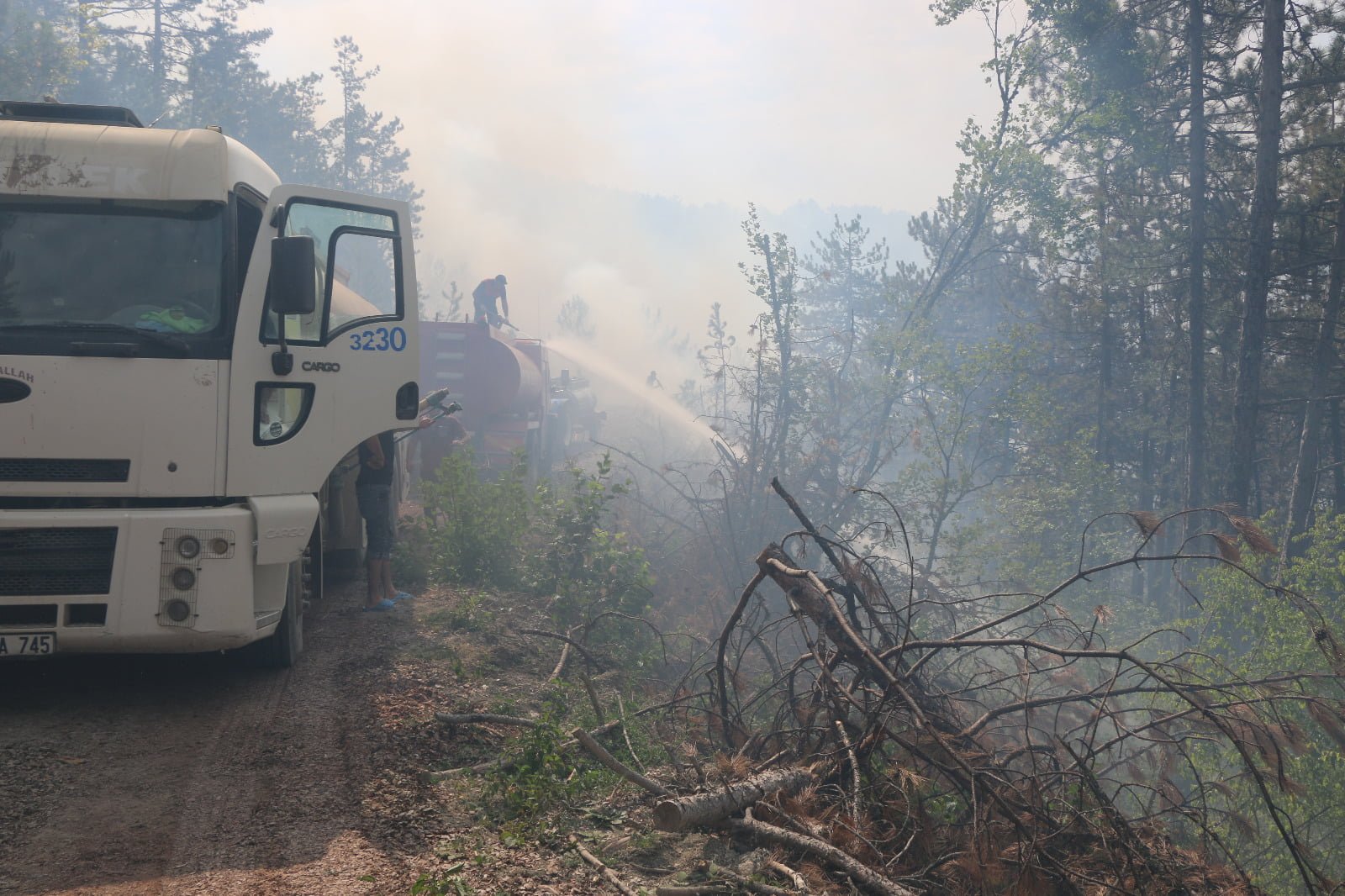 Göynük’e bağlı Güneyçalıca, Aşağıkınık ve Kayalıdere-Tepebaşı arasında salı ve çarşamba günleri çıkan, ekiplerin havadan ve karadan müdahalesiyle kontrol altına alınan orman yangını bölgelerinde soğutma çalışması sürüyor.