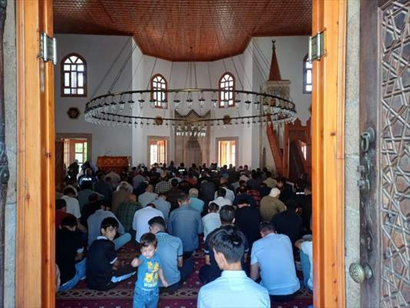 Daha sonra polis memurları, cami çıkışında vatandaşlara lokum dağıttı.