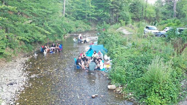 Kent merkezinde etkili olan bunaltıcı sıcak hava, vatandaşları doğaya yönlendirdi. Serinlemek isteyen aileler, Abant yolu üzerindeki ormanlık alandan geçen Abant Deresi kenarına akın etti.
