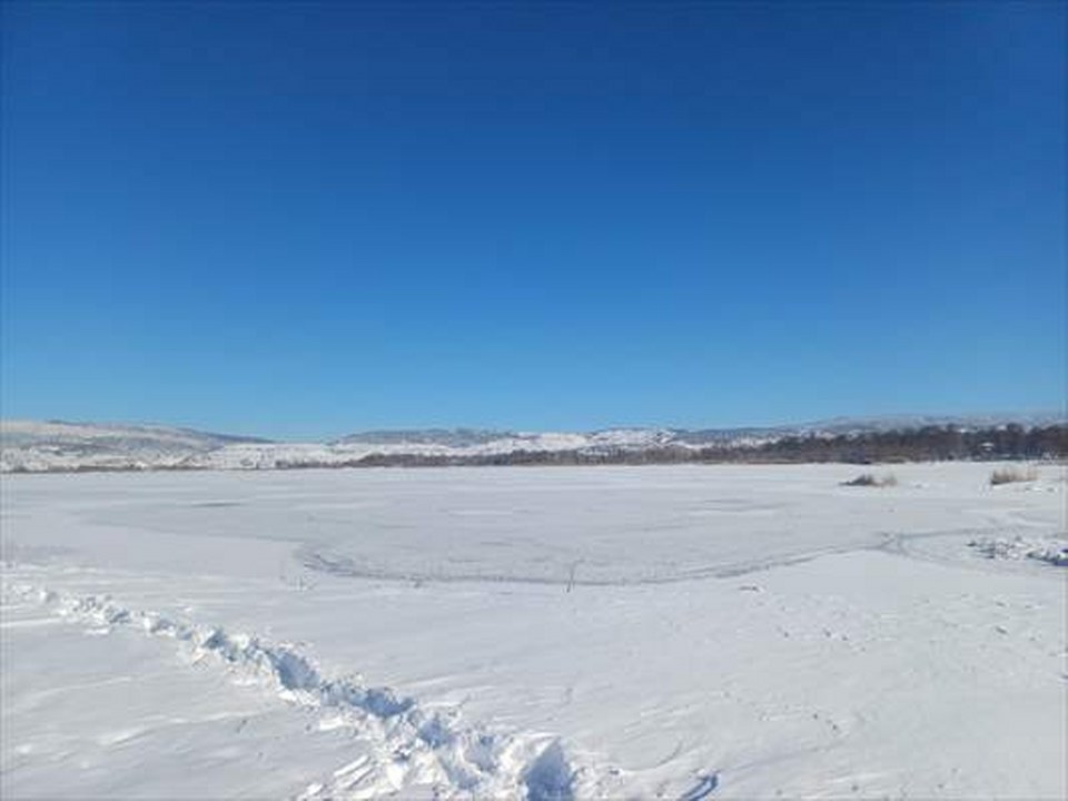 Gölün donmasıyla güzel manzaralar oluşurken, belediye yetkilileri insanları buz tutan gölün üzerine çıkmamaları konusunda uyardı.