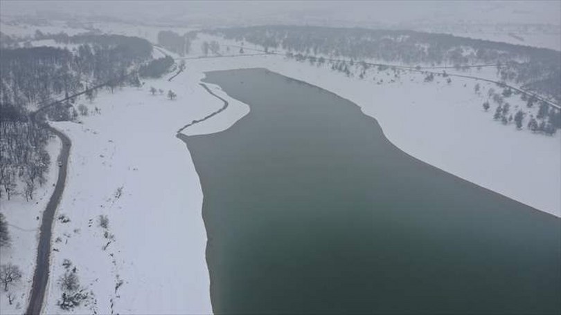 Bu arada, Gölköy Barajı ve çevresinde oluşan kış manzarası havadan görüntülendi.