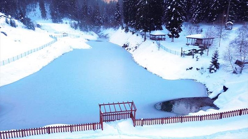 Meteoroloji Genel Müdürlüğü verilerine göre, 58 santimetre ile Kastamonu’da en çok kar yağışı alan bölge olan Mamatlar köyündeki orman parkında yer alan göletin yüzeyi de hava sıcaklıklarının sıfırın altına düşmesi nedeniyle dondu.