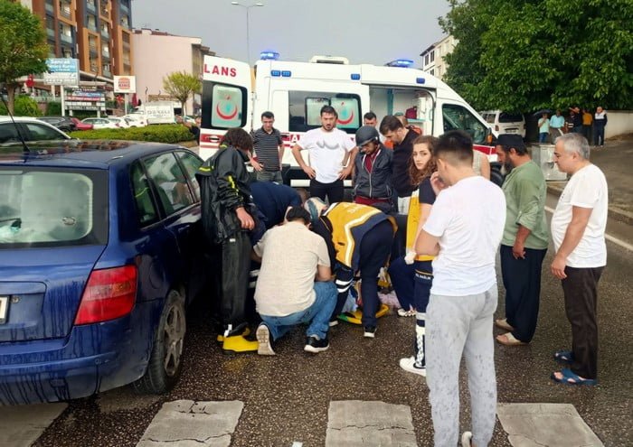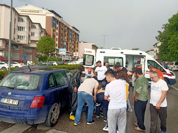 A.Y. idaresindeki 37 RD 871 plakalı otomobil, Emek Mahallesi Adnan Menderes Bulvarı’nda G.L.V’nin kullandığı 78 AAD 177 plakalı motosikletle çarpıştı.