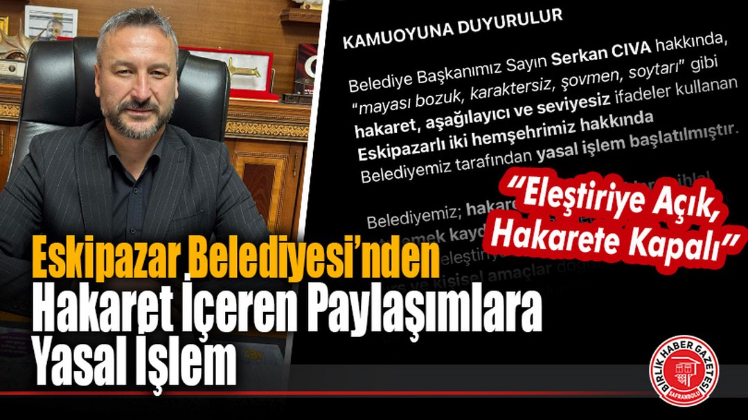 Eskipazar Belediyesi, Belediye Başkanı Serkan Cıva hakkında sosyal medya ve çeşitli platformlarda kullanılan hakaret ve kişilik haklarını zedeleyici ifadelere ilişkin kamuoyunu bilgiliren bir açıklama yaptı.