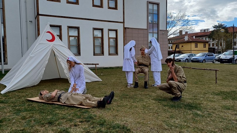 Saat 11:00’de başlayan program, Leyla Dizdar Kültür Merkezi‘nde yoğun ilgiyle devam etti. Protokol üyeleri, öğrencilerden oluşan canlı müzeyi gezerek tarihimizin önemli dönüm noktalarına dair derinlemesine bilgi aldı. Öğrencilerin sergilediği performans, katılımcılar üzerinde büyük bir etki yaratarak tarihe olan bağlılığımızı bir kez daha gözler önüne serdi. Bu özel müze, Çanakkale Zaferi ve şehitlerimize olan minnettarlığımızı simgeliyor, geçmişe duyulan saygıyı ve milletimizin gücünü temsil ediyordu.