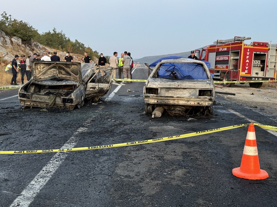 Alev alan araçlardan geriye demir yığınları kalırken, yaklaşık 3 saat trafiğe kapanan karayolu, araçların kaldırılmasıyla yeniden ulaşıma açıldı.
