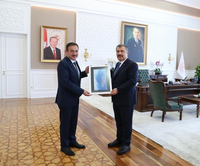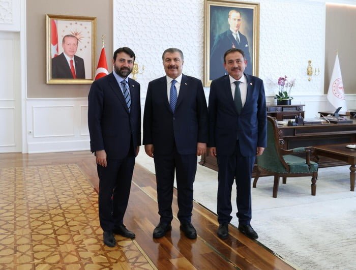 Bakanlık makamına giden Şahin ve Keskinkılıç, yeniden bakanlık görevine devam eden Koca‘ya “hayırlı olsun” dileklerini iletti.