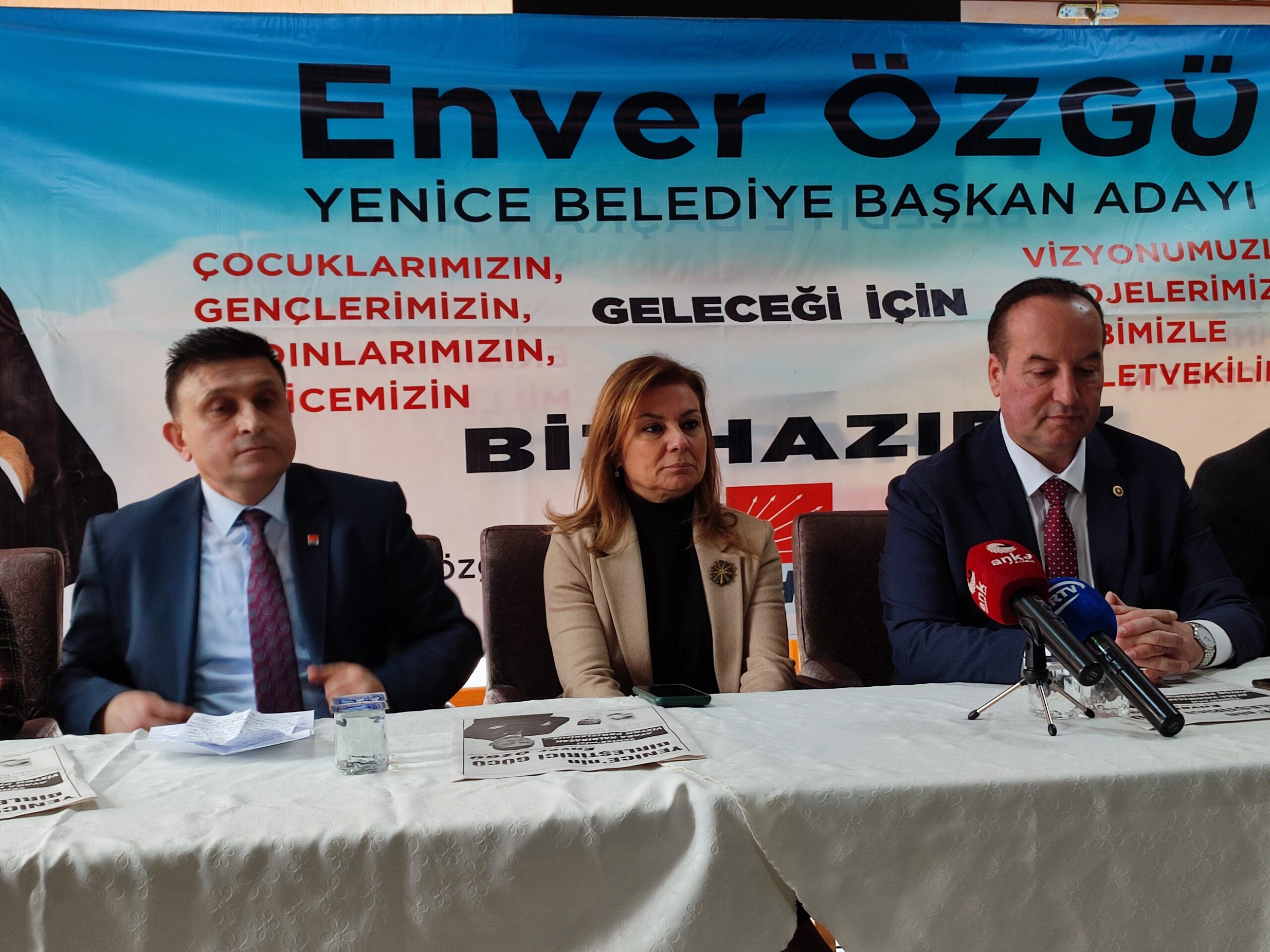 CHP Yenice Belediye Başkanı Adayı Enver Özgü ise yaptığı konuşmada yapacağı projeleri ve çalışmaları tek tek beyan ettiğini dile getirerek, “Yenice’de huzuru, nefes almayı sadece biz başarabiliriz. Safranbolu’da, Çaycuma’da, Eskişehir’de, Ankara’da, İstanbul’da başardık. Cumhur İttifakı’nın hem genelde hem yerelde bu ilçeye hiçbir şey veremeyeceğini gördük. Asgari ücretin 2 katını 3 katını veren Cumhuriyet Halk Partili belediyeleri de gördük. Startı bugün veriyoruz. Bu işi biz başaracağız.”dedi.