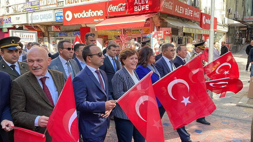 Kent Meydanı’ndaki programda ise Vali Fuat Gürel ve Belediye Başkan Vekili Seher Berker tarafından Atatürk Anıtı’na çelenk sunuldu, saygı duruşunda bulunuldu ve İstiklal Marşı okundu.