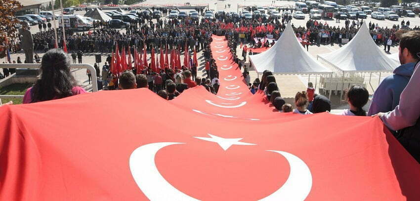 Yürüyüşte açılan 50 metre uzunluğundaki Türk bayrağı güzel görüntü oluşturdu.