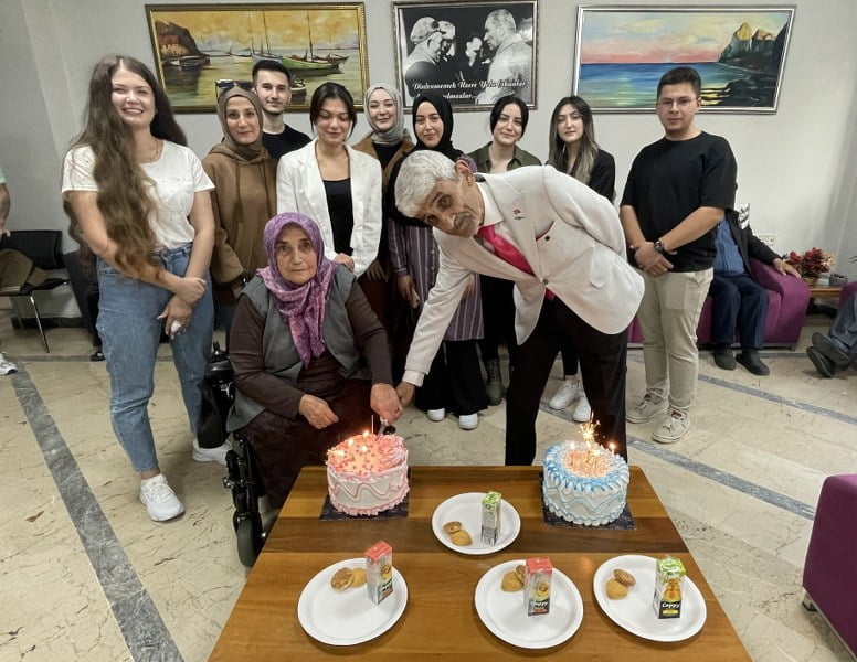Karabük Üniversitesinde “gönüllülük çalışmaları” dersi alan bir grup öğrenci, Cumhuriyet’in kuruluşunun 100. yılı dolayısıyla Yücel Huzurevinde “Cumhuriyet Kuşakları Buluşması” etkinliği gerçekleştirdi. Huzurevi sakinlerine karanfil veren öğrenciler, onlarla “Cumhuriyet” pastası kesti. Oyun havaları eşliğinde eğlenen huzurevi sakinleri, şiirler okudu, öğrencilerle dans etti.