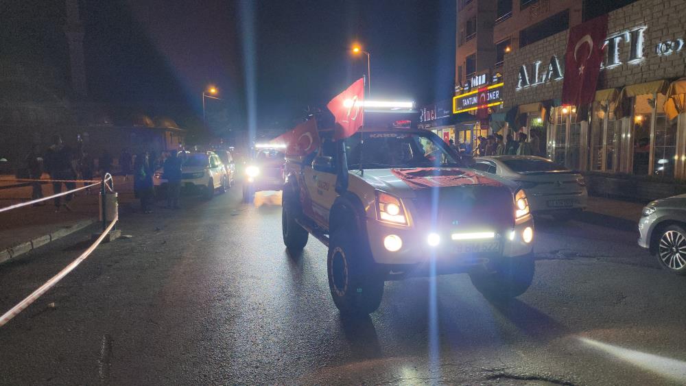 KARDOFF ekiplerinim arazi araçlarıyla, motosiklet severlerin de motorlarıyla destek verdiği yürüyüşte vatandaşlar ellerinde Türk bayrakları ve meşalelerle marşlar söyledi.
