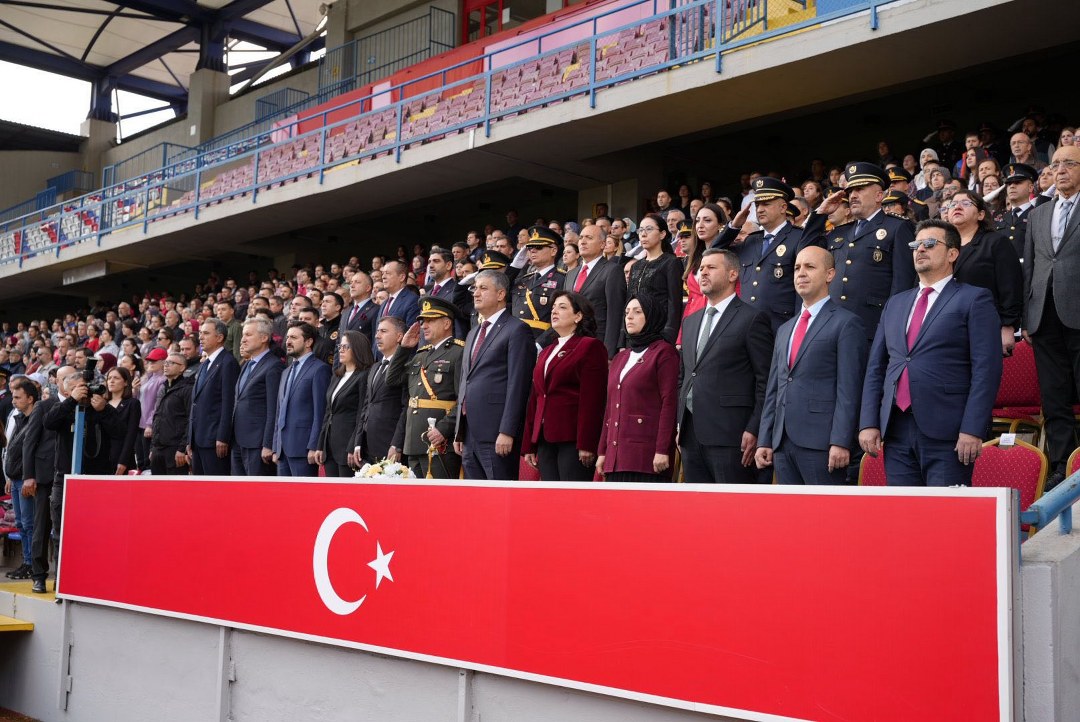 Konuşmasında Cumhuriyet’in önemine değinen Vali Mustafa Yavuz, “Bir asır önce Gazi Mustafa Kemal Atatürk önderliğinde yola çıkan kahramanlar, milletimizin özgürlüğe adanmış yüreğini dünyaya ilan etti” dedi.