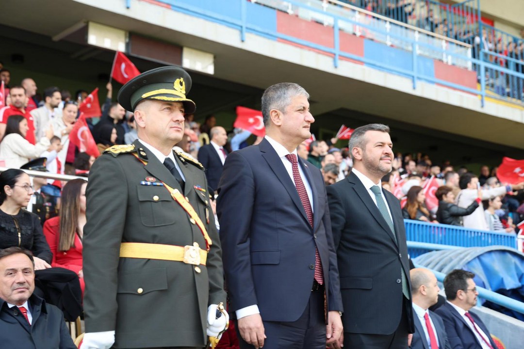 Saygı Duruşu ve İstiklal Marşı’nın okunmasının ardından başlayan törende Vali Mustafa Yavuz, vatandaşların bayramını kutladı.