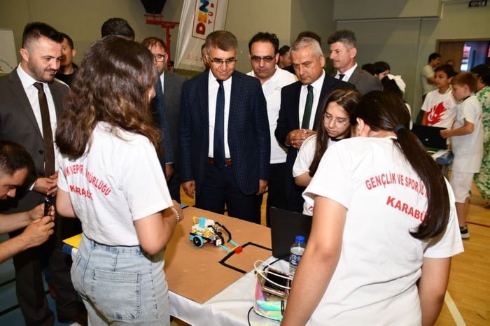 Öğlebeli Gençlik Merkezinde düzenlenen Robotik Kodlama Proje Şenliğine katılan Vali Fuat Gürel öğrenciler tarafından yapılan proje çalışmalarının yer aldığı stantları ziyaret ederek öğrencilerden bilgiler aldı.