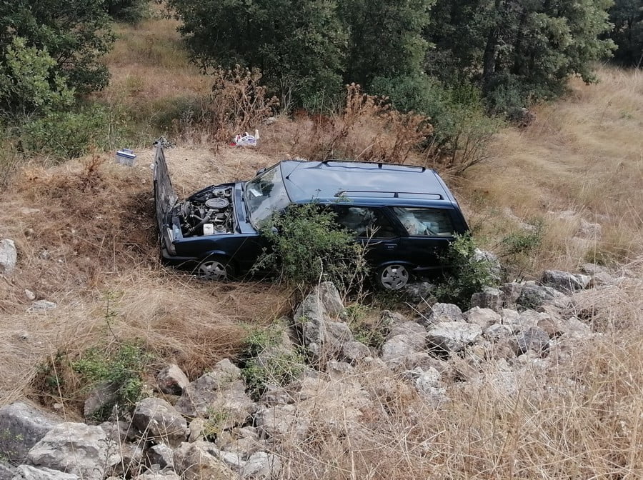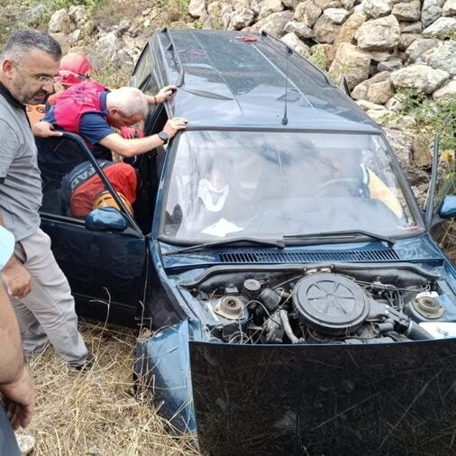 Taşlık alana düşen otomobilin sürücüsü A.G. ve yanındaki Ş.G. yaralandı.