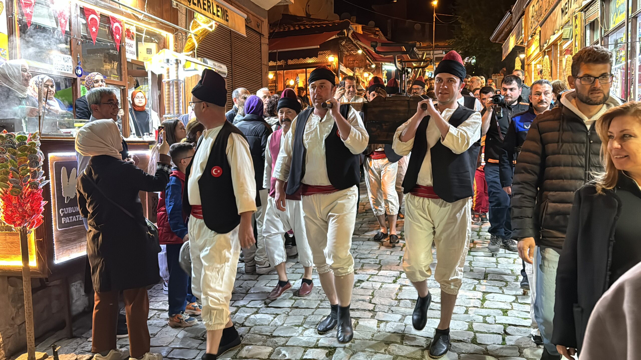 Kazdağlıoğlu Meydanı’nda başlayan etkinlikte dönem kıyafetlerini giyen tulumbacılar, omuzlarına aldıkları tulumba ile Tarihi Çarşı’nın sokaklarında tur attı.