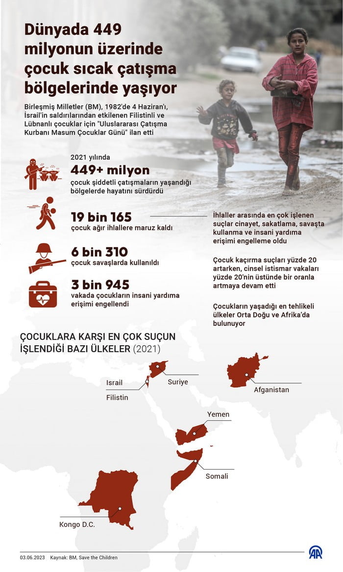 Birleşmiş Milletler (BM), 1982’de 4 Haziran’ı, İsrail’in saldırılarından etkilenen Filistinli ve Lübnanlı çocuklar için “Uluslararası Çatışma Kurbanı Masum Çocuklar Günü” ilan etti