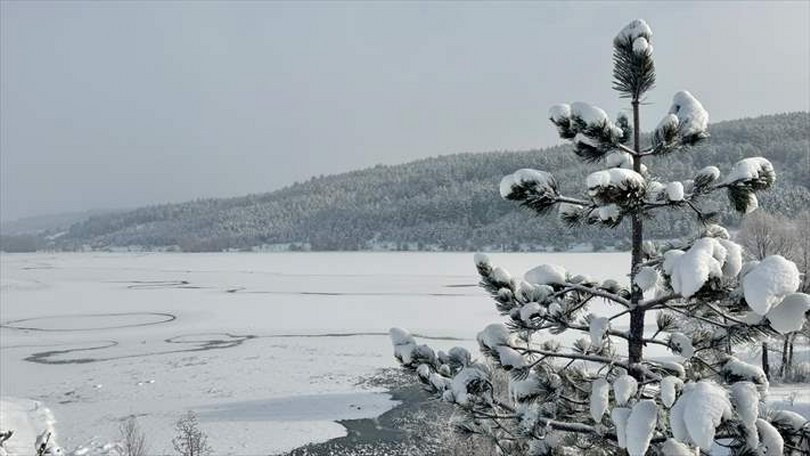 Çok sayıda kuş ve balık türüne ev sahipliği yapan gölet, beyaz örtüyle birlikte kış manzaralarına sahne oldu. Bölgedeki soğuk hava, göletteki canlı yaşamını da etkilerken, ortaya kartpostallık görüntüler çıktı.
